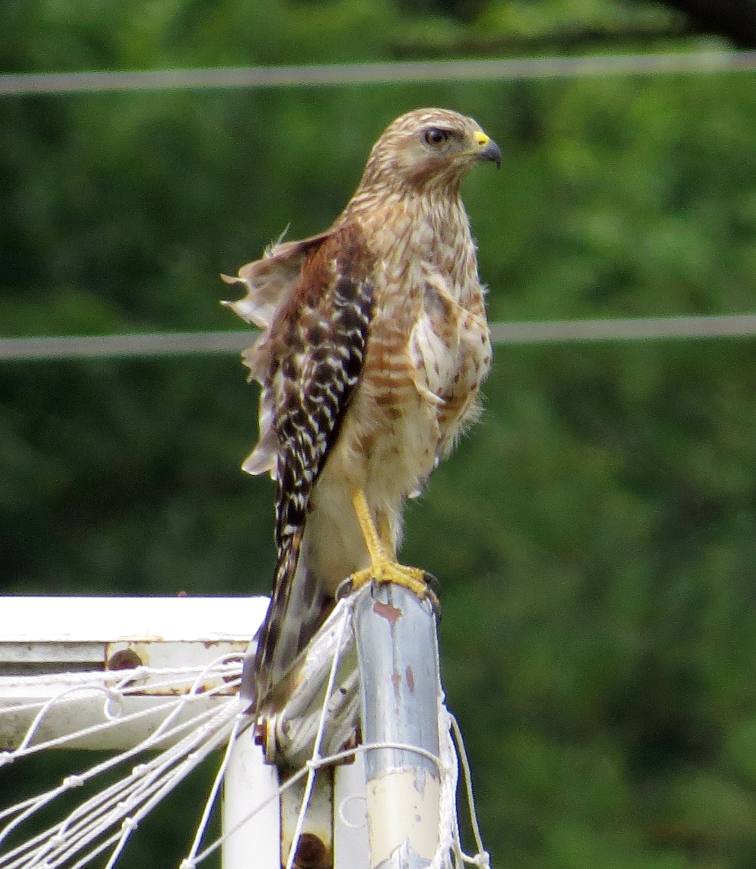 Pony Pasture wasn’t the only place with a lot to see this week. Wednesday morning around 9:30 I was driving south on Parham from Interstate 64 and I turned onto a residential street. A hawk swooped over and landed on a soccer goal post. I pulled over and rolled down my window and got this picture: