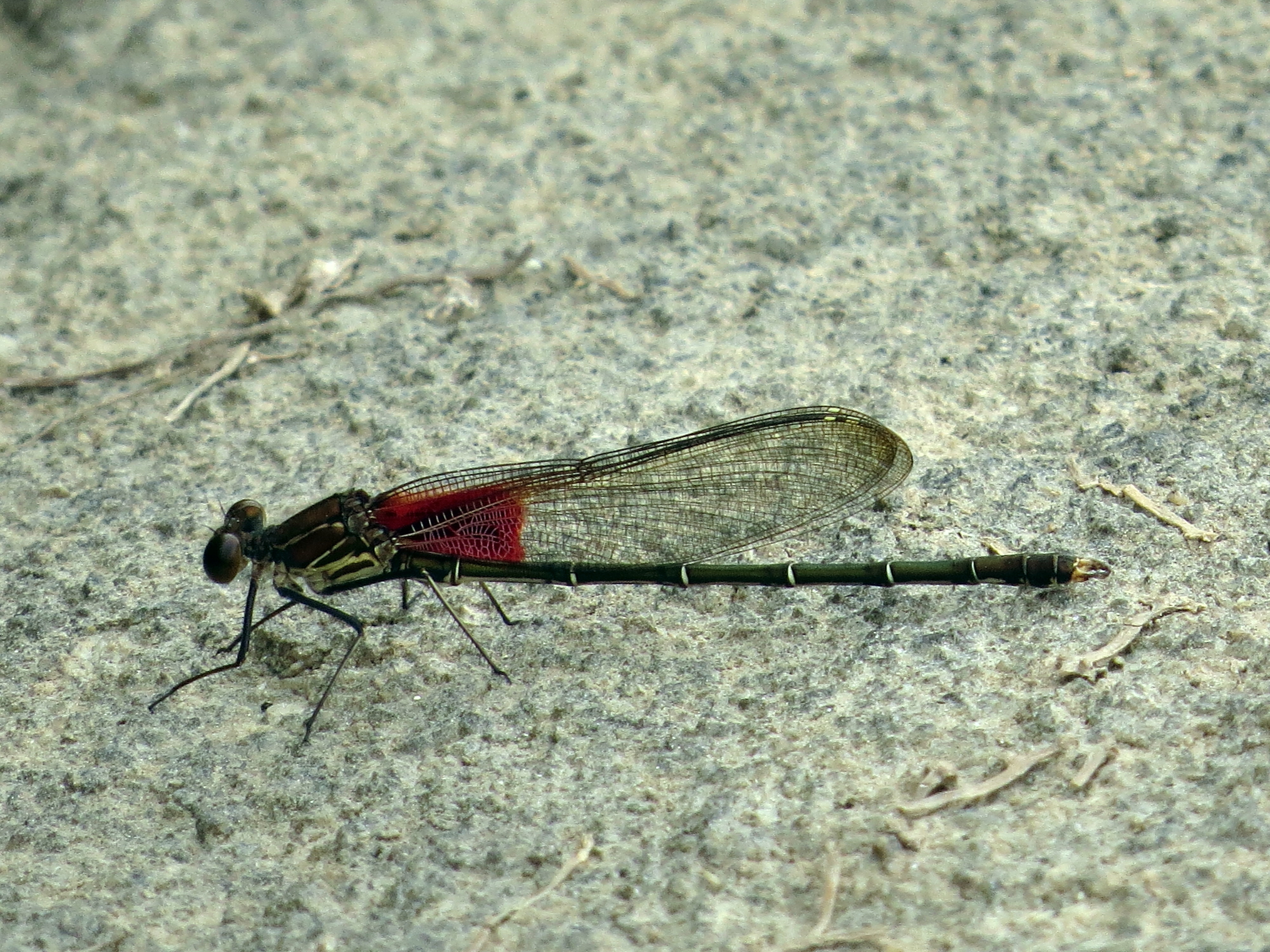 It’s easy to take pictures when I just have Mackey and Turner with me since I know what they’re going to do and they know what I’m going to do. Lucy stirs things up a little which is great – it keeps us from getting set in our ways. I had to stand on three twitching leashes and stand still to get this pretty damselfly: