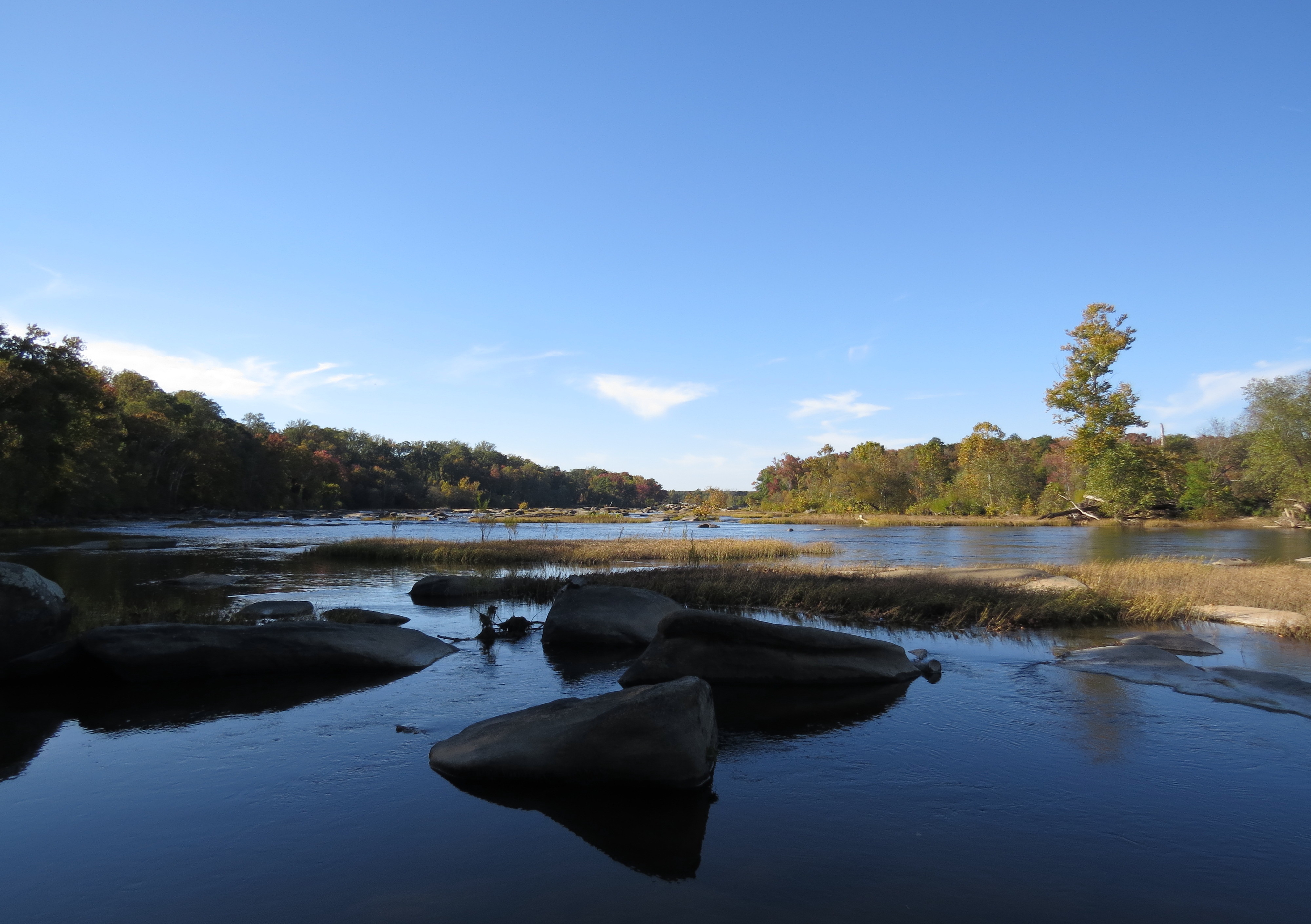 I wouldn’t say this week has been a “let down” after our excellent cabin adventure, but it certainly has been a “wind down.” The air has been so crisp and pure that both the breathing and the photography have been exceptionally good. Writers sometimes talk about a “tang” or a “snap” in the air and often describe autumn air as “crisp.” It’s tangy and snappy and crisp and more. The early part of autumn still just feels like late summer and humidity lingers. This morning (Sunday) at the river let me assure you, summer was gone without a trace. It was 47º and clear, clear, clear at the edge of the water and the wind was blowing a gale. It felt great but it was cold. This is from this morning; look at Mackey looking at the river: