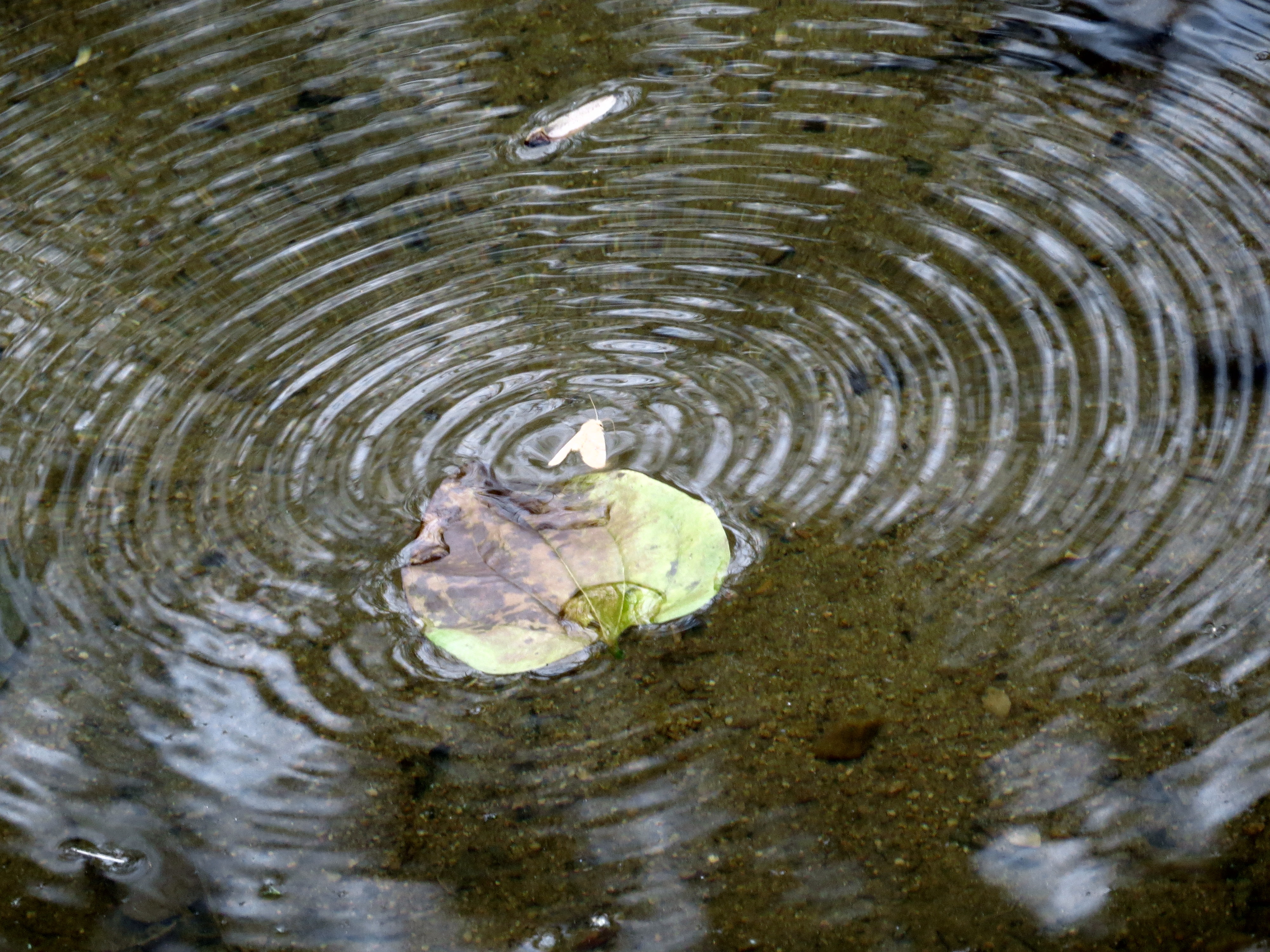 The same day (Sunday, 28 December, 2014) we were at the easternmost point in our hike (furthest downstream) and were hiking away from the river along the banks of the creek. I’m not even certain what the name of the creek is. Pony Pasture is on one side of it and Willow Oaks Country Club is on the other. I noticed unusual movement in the water and looked down and saw this moth: