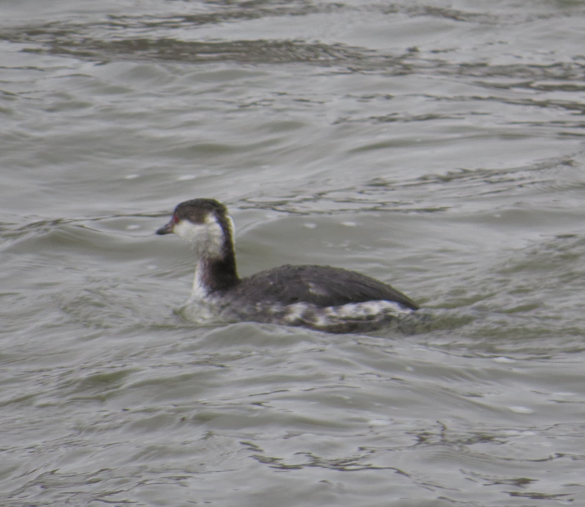 I described it to Betsy thus “Just a few yards down from Half Moon Beach, this is a dedicated diver – I had to stand there with my hands freezing and my lens pointed while I hoped for it to come up. Then click in about the three seconds before it disappeared again. Any guesses? Very small, maybe not even as big as a Bufflehead:”