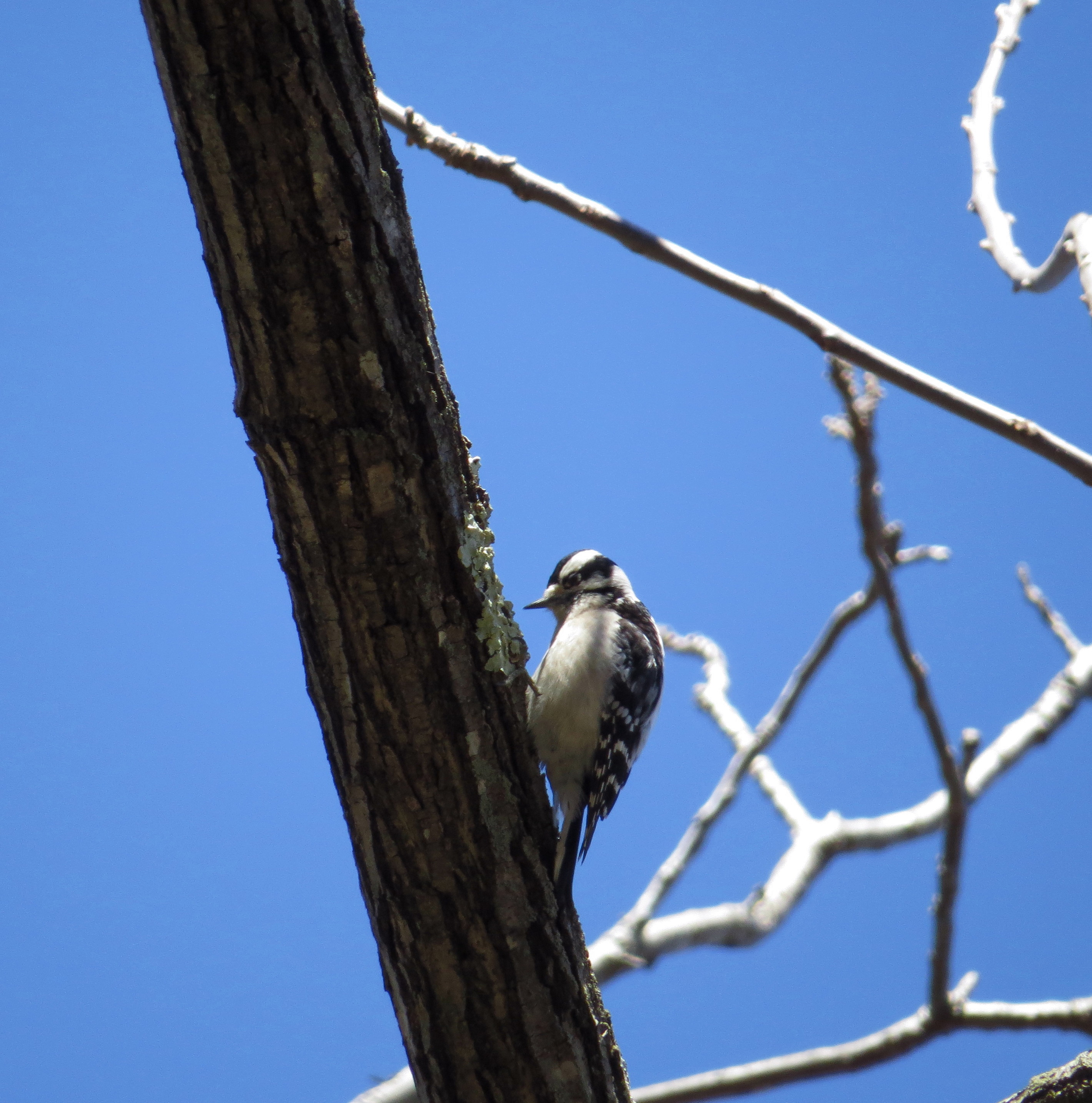 I looped around and came up on the other side; the female was tap-tap-tapping away on the sunny side of a big sycamore: