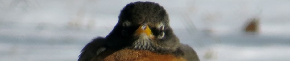 Here’s a different evolutionary niche. This focus is a bit off, which I apologize for and am irritated by, but what can I say. This is the ultimate in slacker photography. I came home from work the other day and I had my camera in my car. There was a flock of robins in the snow in my front yard. I’m sitting on my heated seats, with the car heater on, listening to NPR, I lower my power windows, point the camera out and voila. Slacker photography extraordinaire: