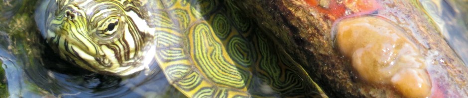 Saw a baby turtle the same day – this guy was swimming around and popped his head out for a look. He was bigger than a quarter, but just barely: