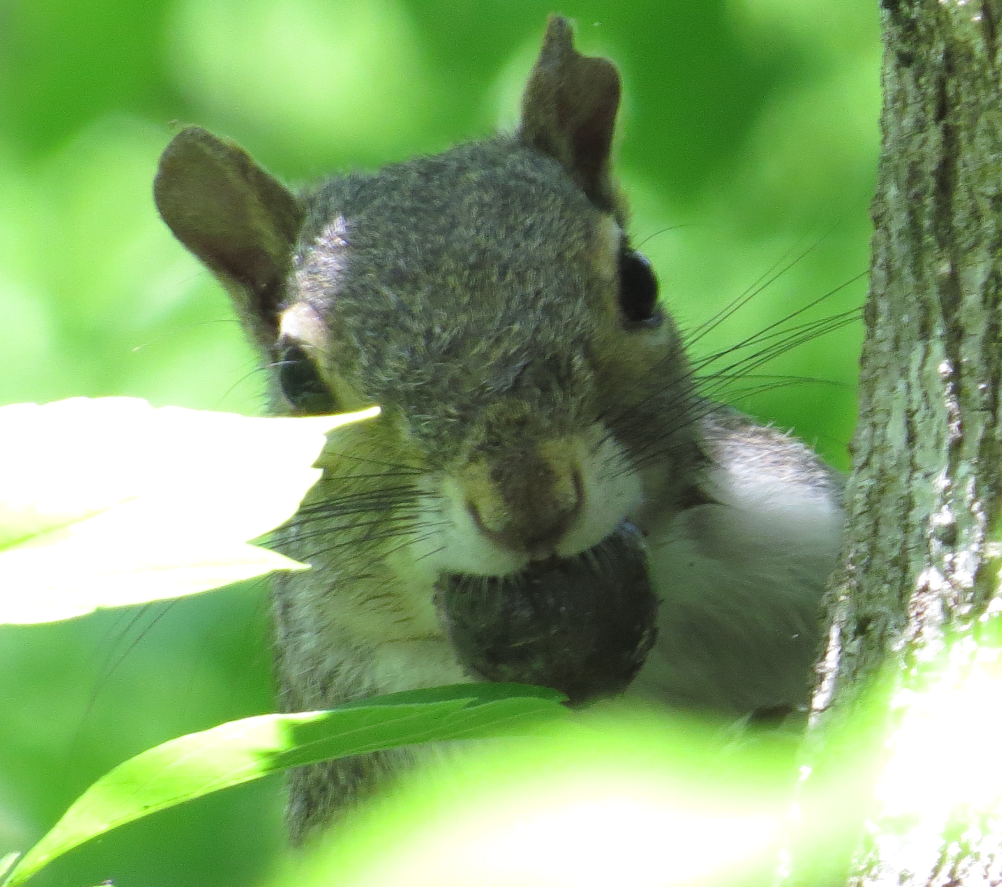 There is a baby of everything around right now – plants and animals. This squirrel is not a baby – it was missing more than half its tail plus has lost a chunk from its ear. It was climbing a tree with a nut in its mouth but it took a break to glare at Turner. Mackey they couldn’t care less – but they never take their eyes off Turner: