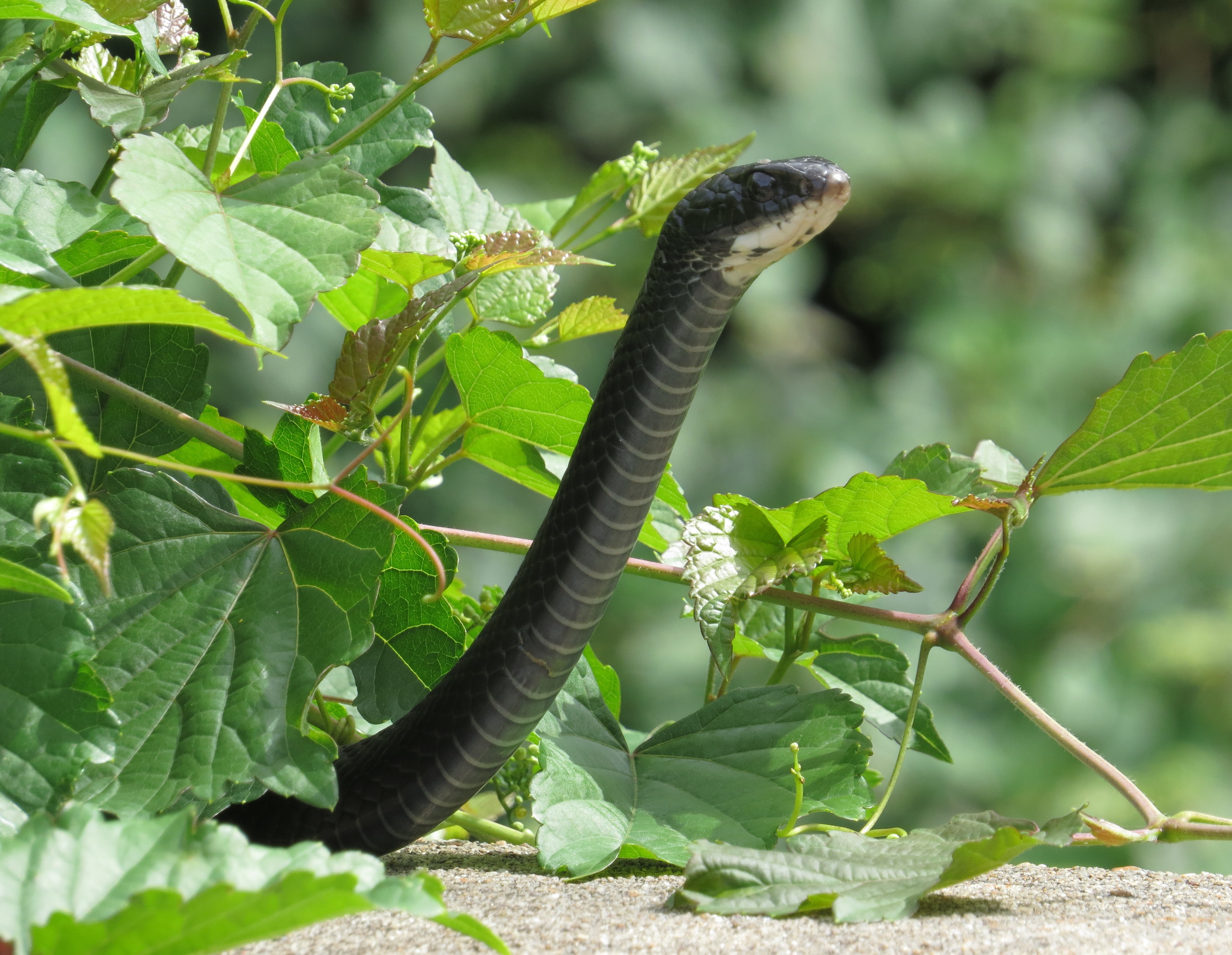 This Black racer (Coluber constrictor priapus) was at Bryan Park. I call this my Garden of Eden shot: