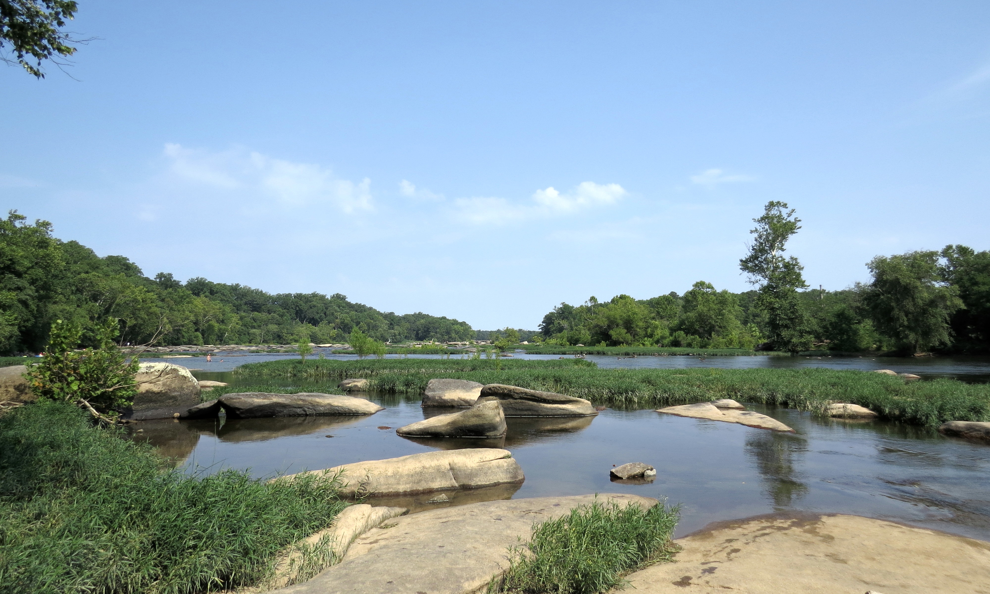 I haven’t posted a picture of the river itself recently; my favorite photography spot has been crowded. I’ve been avoiding it in favor of other more thinly attended areas of the park. But Kristin and Shane and Tara had a long drive ahead and we all went to the river a bit early this morning. And I got a picture! Unfortunately I didn’t get a picture of people or dogs – only the river: