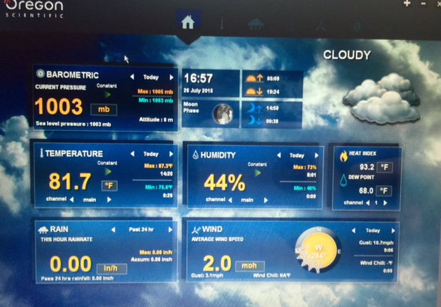 My friend and neighbor Lee plus some of the helpful guys from Pleasants plus my brother Shane all pitched in this week to help me get my Oregon Scientific Weather Station fully operable this week. But that is the story of another obsession. Getting me in touch with my inner Rainman. Here’s a screenshot from my weather station. Thank you so much to Lee and Shane and Pleasants! More on another post. But here’s the home screen: