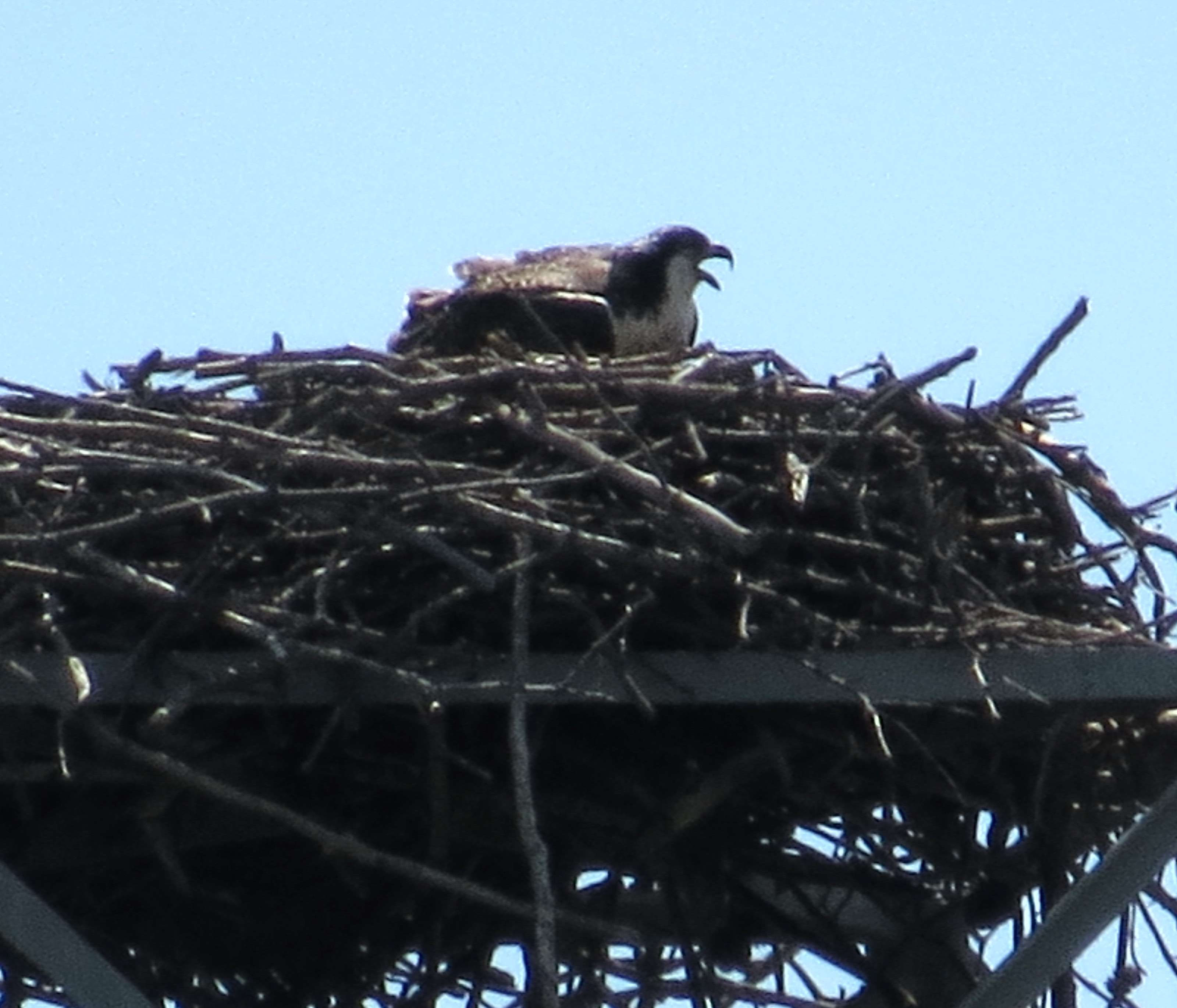 Here’s one of the many ospreys that live along Parham Road in Richmond. Ospreys are noisy birds in my experience – they talk and talk. Red-tails get anxious when you get near them – it’s easy to watch them watching you. Ospreys are much more tolerant. I don’t know if this is a youngster or an adult but it had a lot to say: