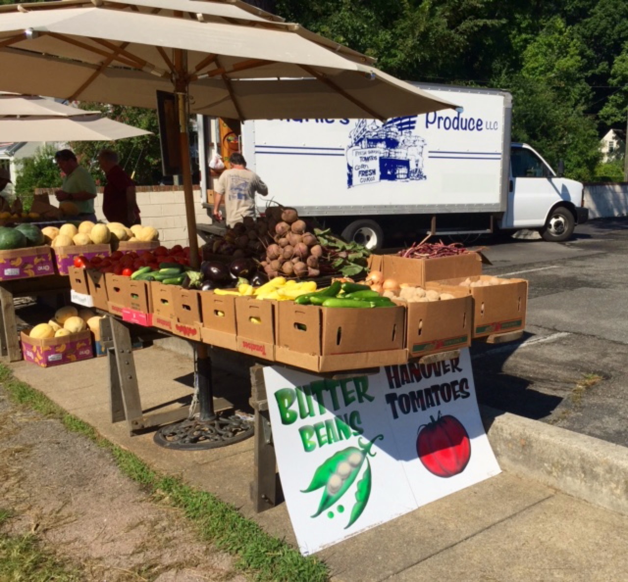 Earlier this week I went to a produce stand on Libbie Avenue here in Richmond. My first time ever, I am amazed to say. My friend Betsy used to buy produce there regularly, and cooked the best butter beans I’ve had before or since. Her grandson is my old friend Skye and the three of us spent many a relaxing summer evening eating butter beans, fresh corn on the cob, delicious fish, thick slices of tomato, cold glasses of lemonade and iced tea, the best that summer has to offer. I took this picture as I was leaving: