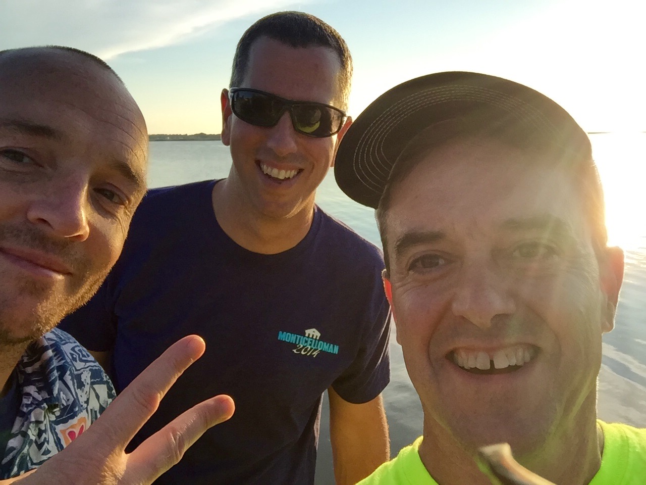 Larry’s triathlon on Saturday was 70.3 miles long (swim 1.2 miles, bike 56 miles, run 13.1 miles). The one Travis and Andrew and I did was only 31.7 miles long (swim 1 mile, bike 24.5 miles, run 6.2 miles). Andrew and Travis and I did another one this morning that was 17.1 miles long (swim ½ mile, bike 13.5 miles, run 3.1 miles).