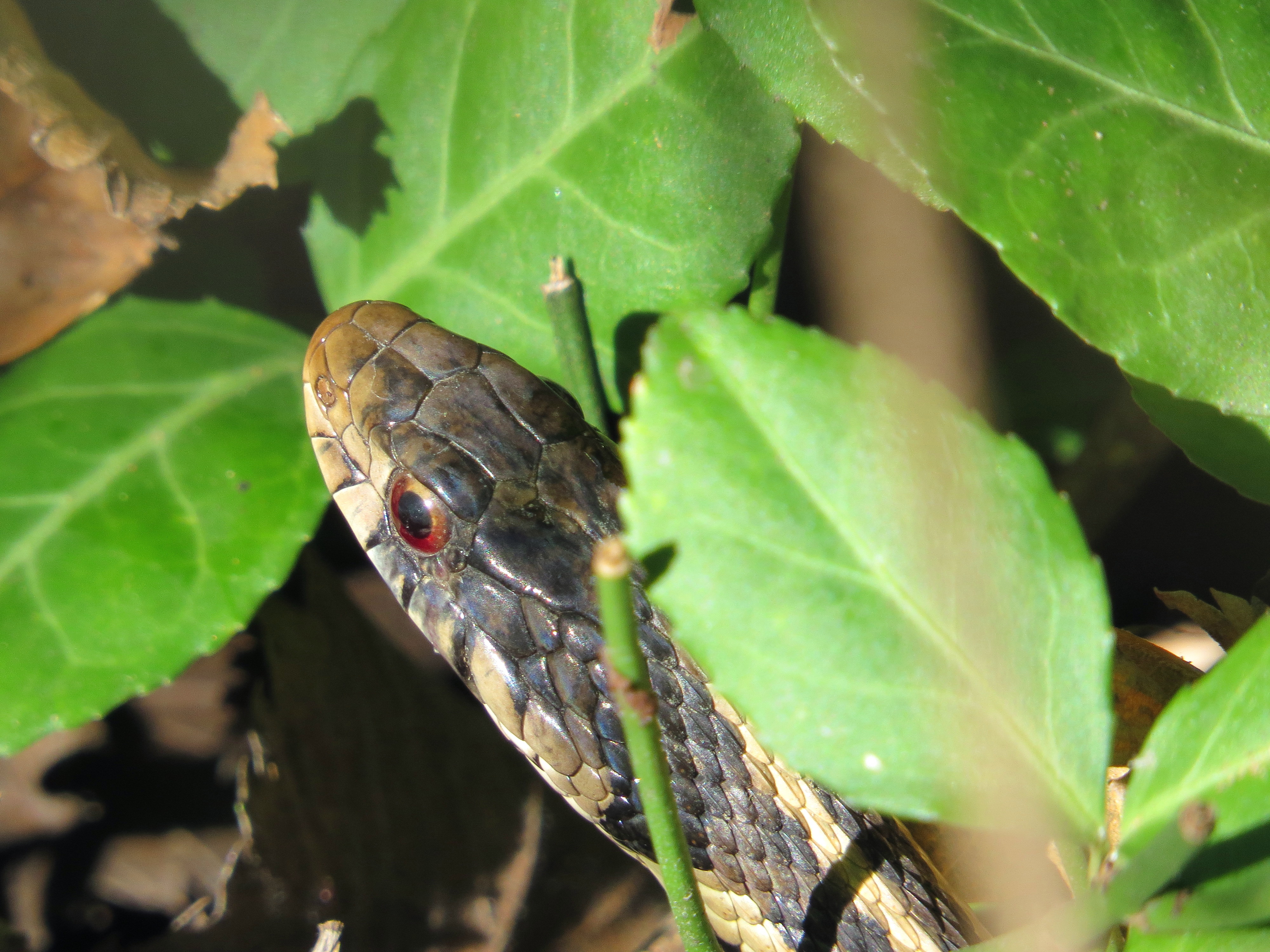…and see if it sticks! Shorthand for trying something out to see if it works. That’s what I’m doing at the end of the blog this week. At the beginning of the blog, I need to warn ophidiophobes (people with an unreasonable fear of snakes) that there’s a crisp photograph of an Eastern Gartersnake (Thamnophis sirtalis) I took this morning at Pony Pasture. I thought for a moment it was a Common Ribbonsnake (Thamnophis sauritus) until I read the garter snake link above. I’ll put the picture some ways down this post and warn readers before they get to it. Remember that ophidiophobia is by definition an unreasonable fear and you can make it go away if you choose. Or keep it, it’s all about the choices.