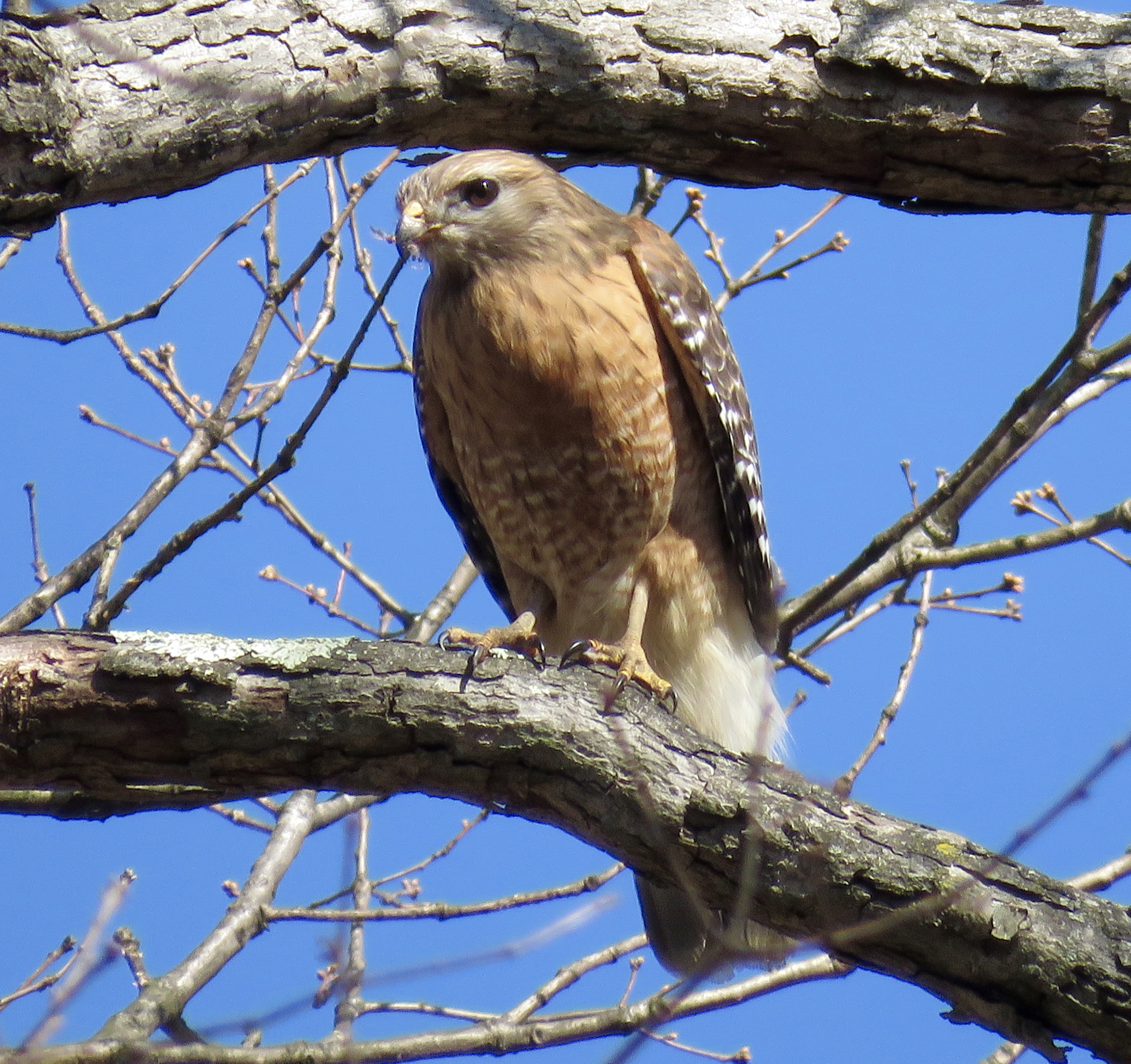Red-shouldered Hawk in Bryan Park. The thing about raptor pictures is, they just “take command” of the image – when I look at raptor pictures, I just look at the raptor.
