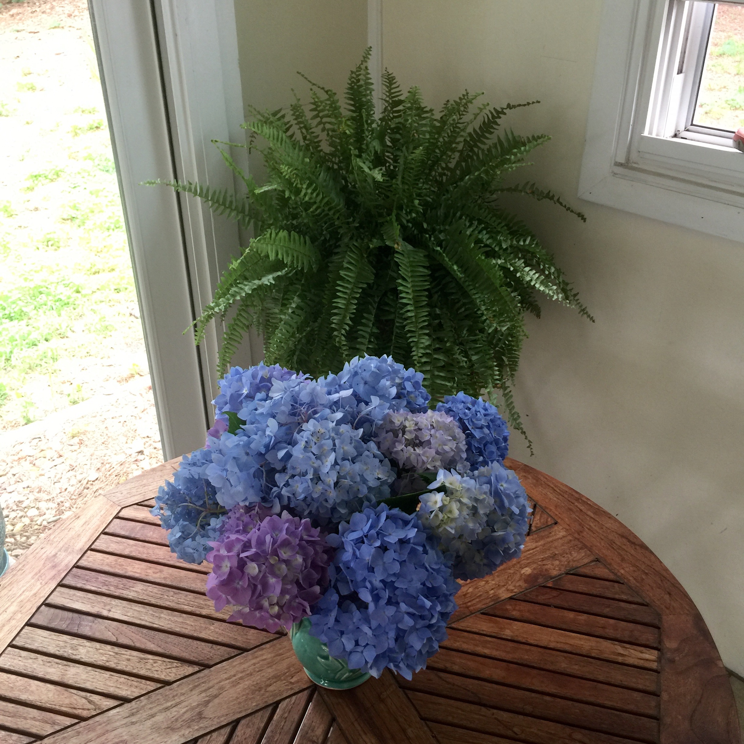 Dinner table decorations from the side yard to the back porch.
