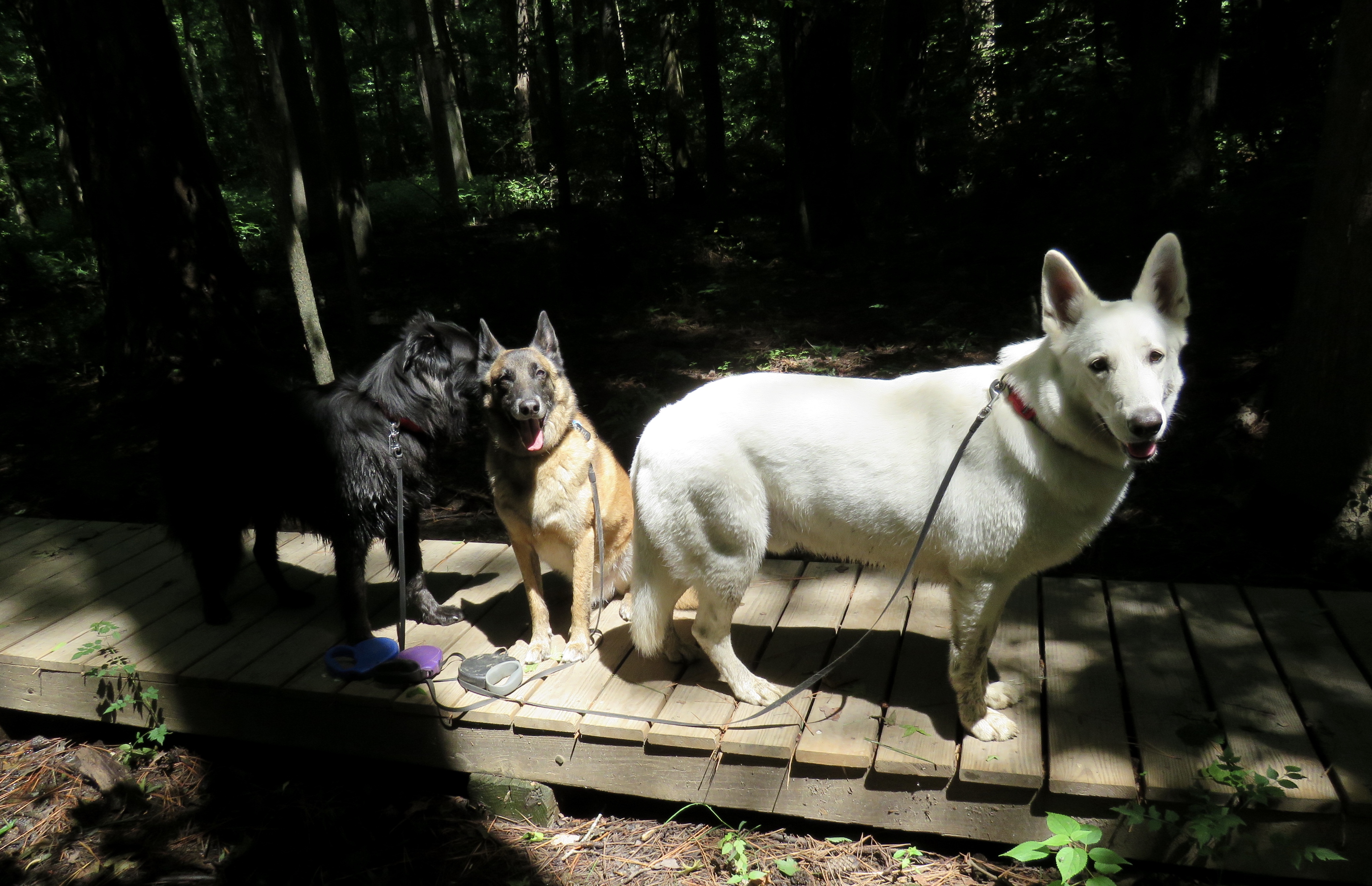 Mackey (black, on left), Turner (brown, in middle), Yuki (white, on right) in Wetlands at Pony Pasture this morning.