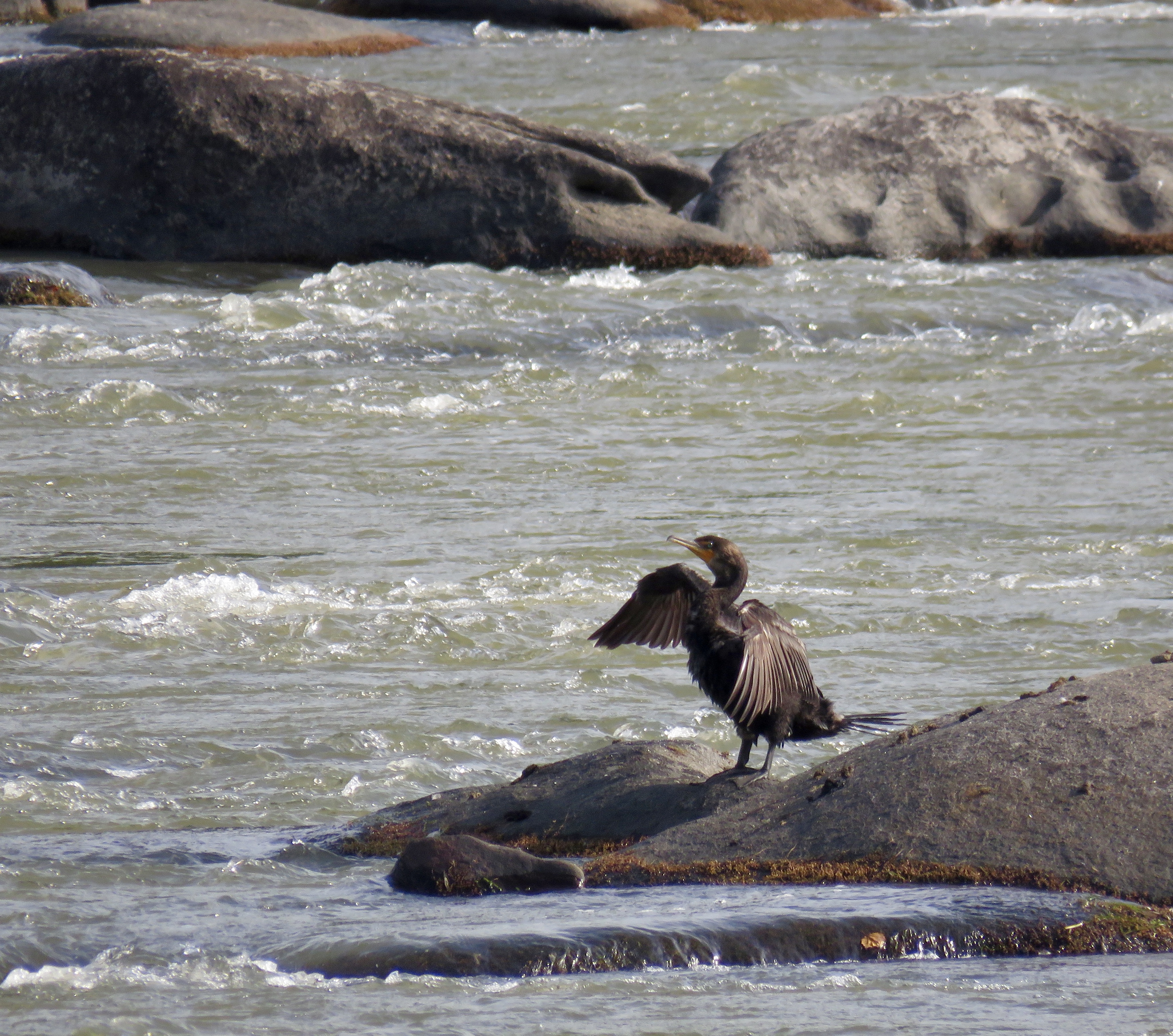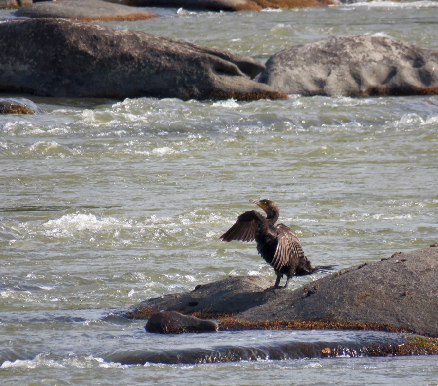 Cormorant stoop. Not really, but they both folded their wings simultaneously: