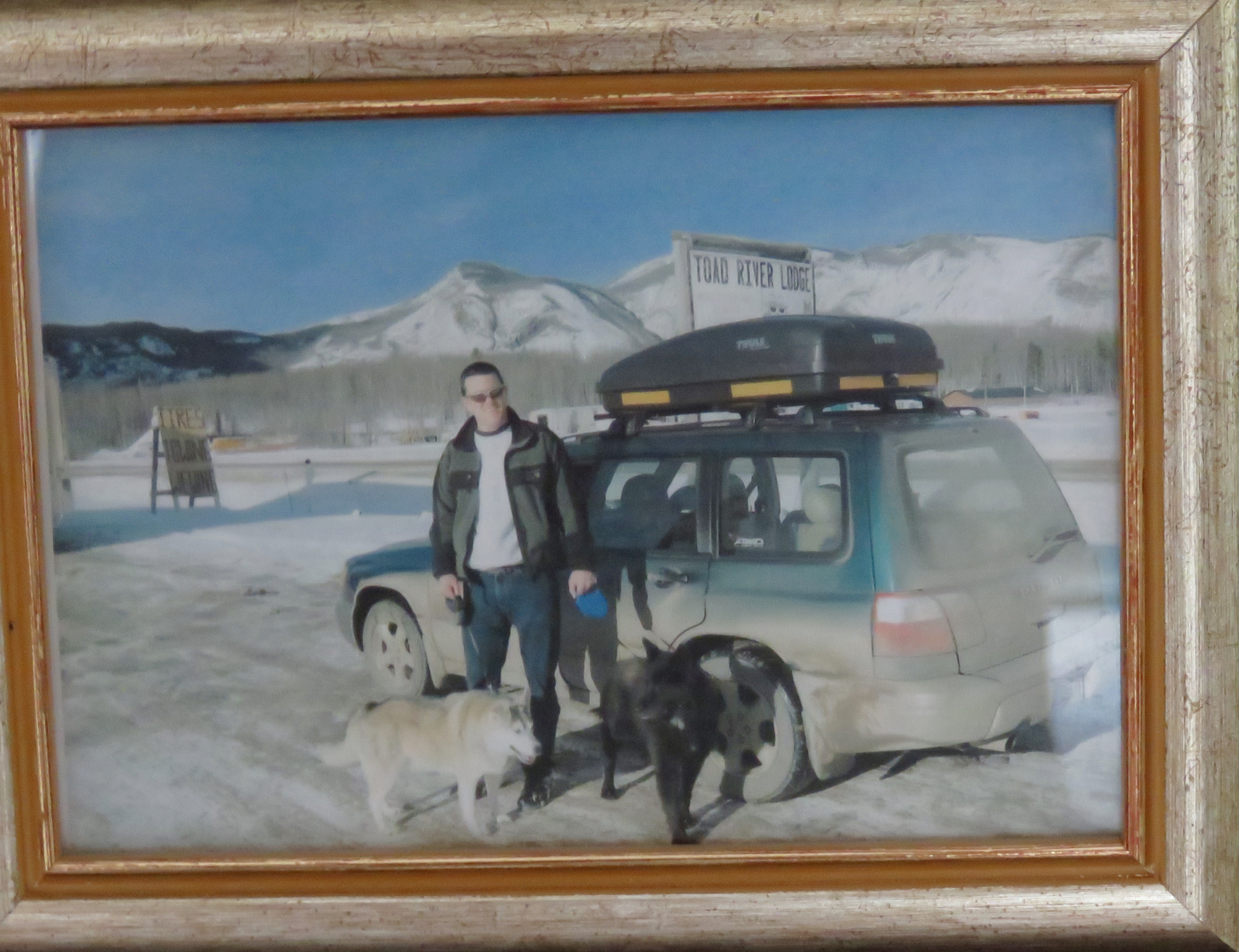 Ivory, Nicky, me and my Subaru, Toad River Lodge, British Columbia, February, 2006
