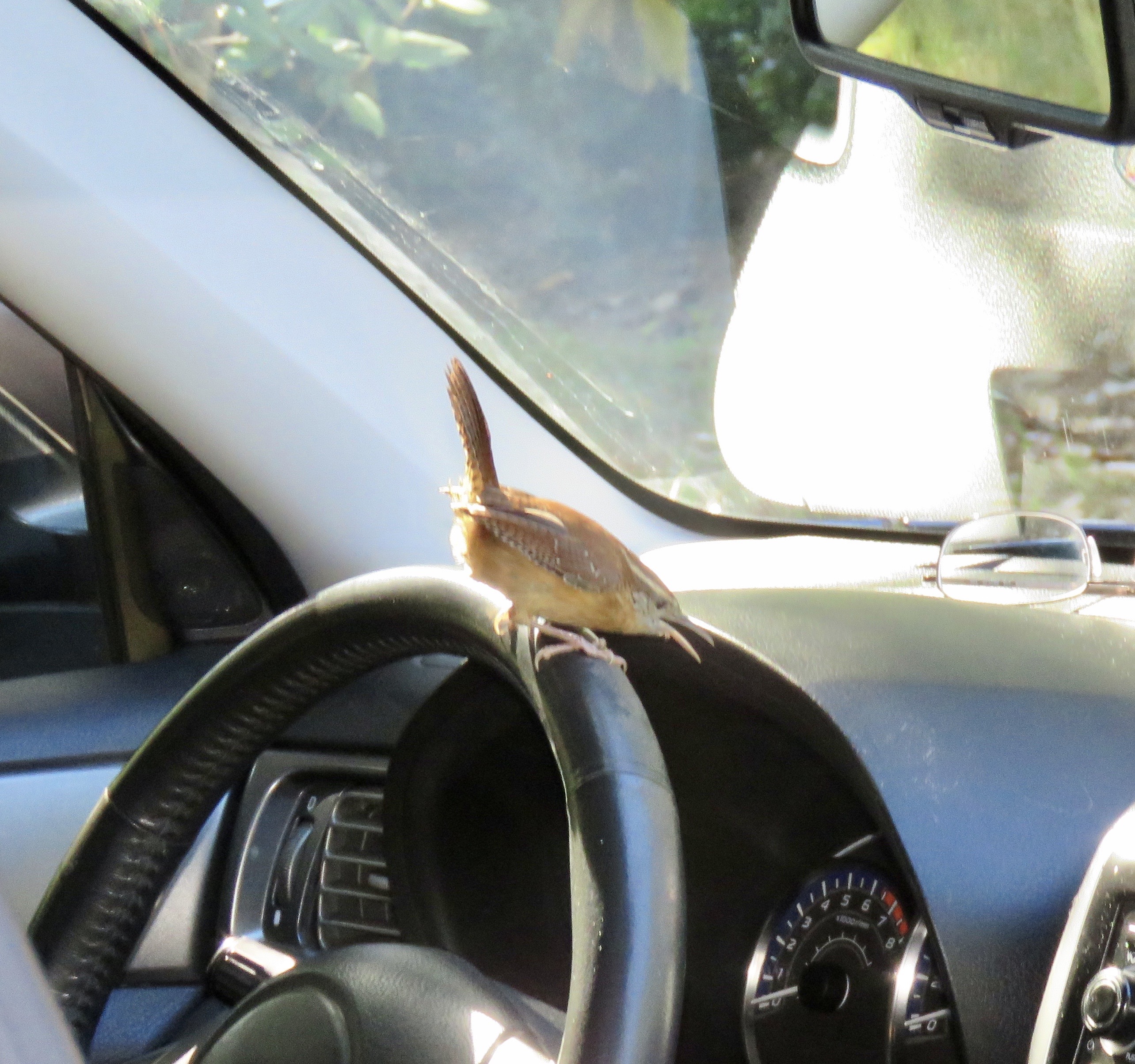 I walked out to my car this week and found this Carolina Wren ready to drive: