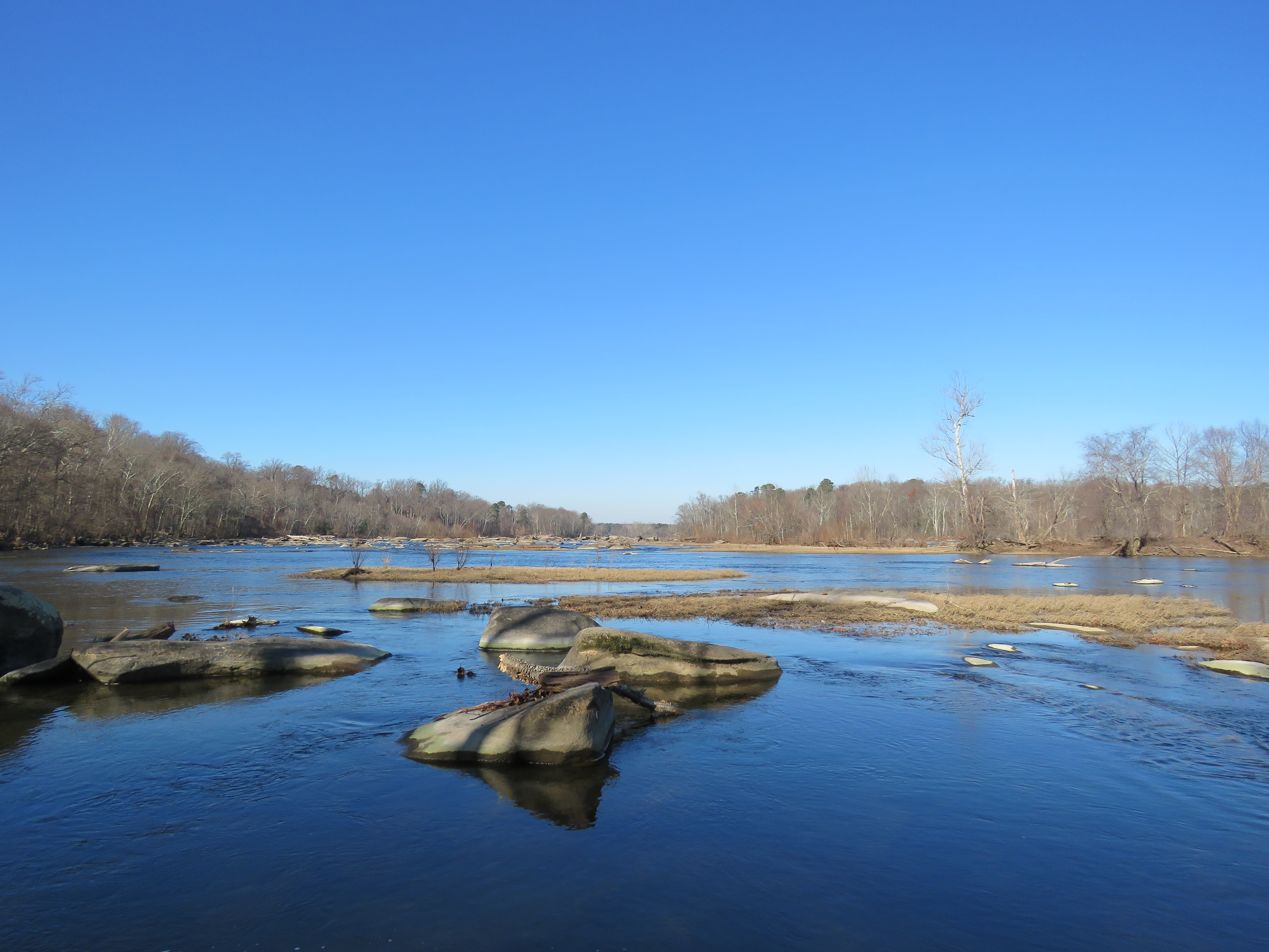 Blue river reflects a blue sky. I am mesmerized every time I look.