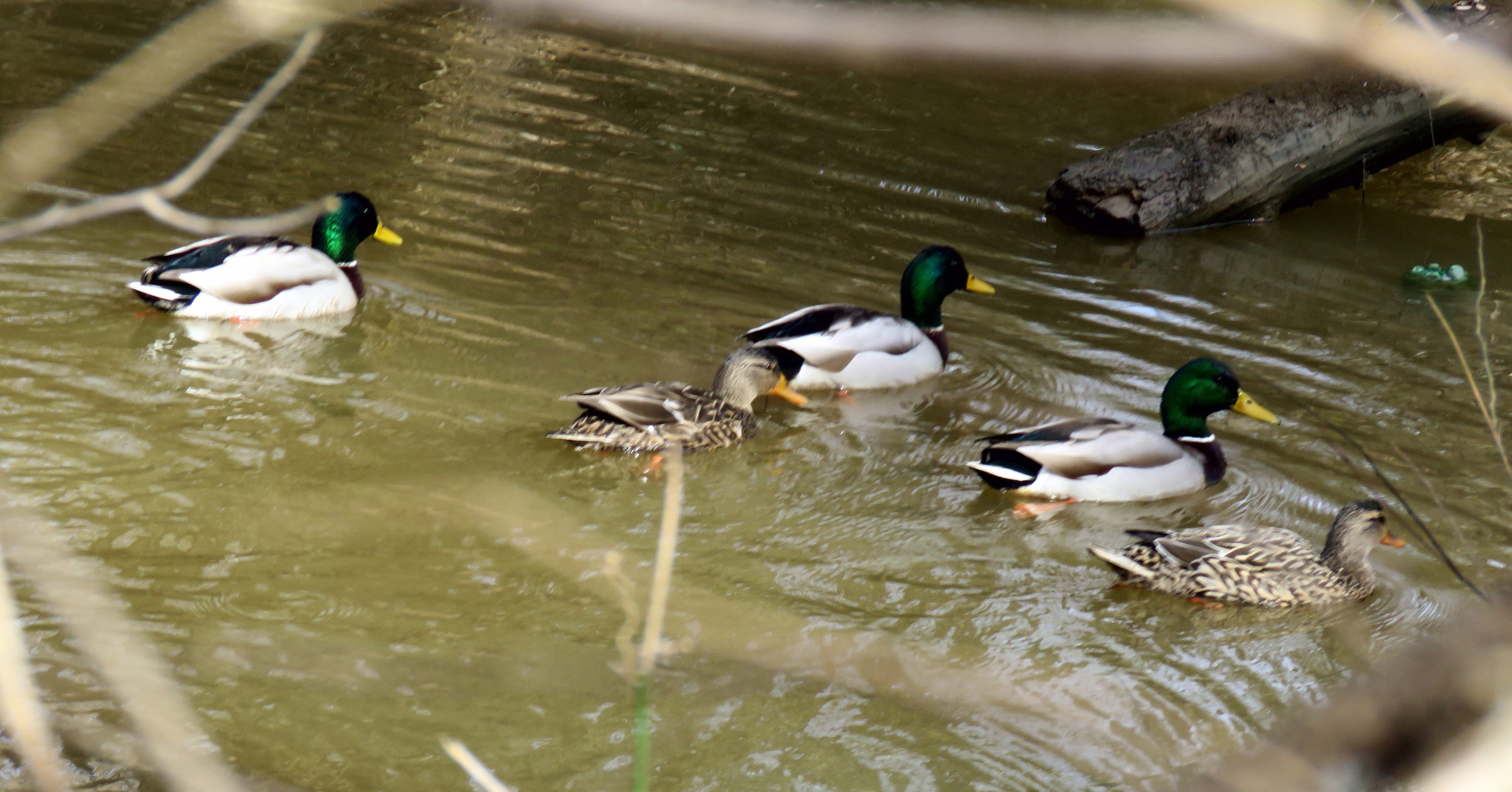 Just one of many mallard squadrons patrolling the park Tuesday.