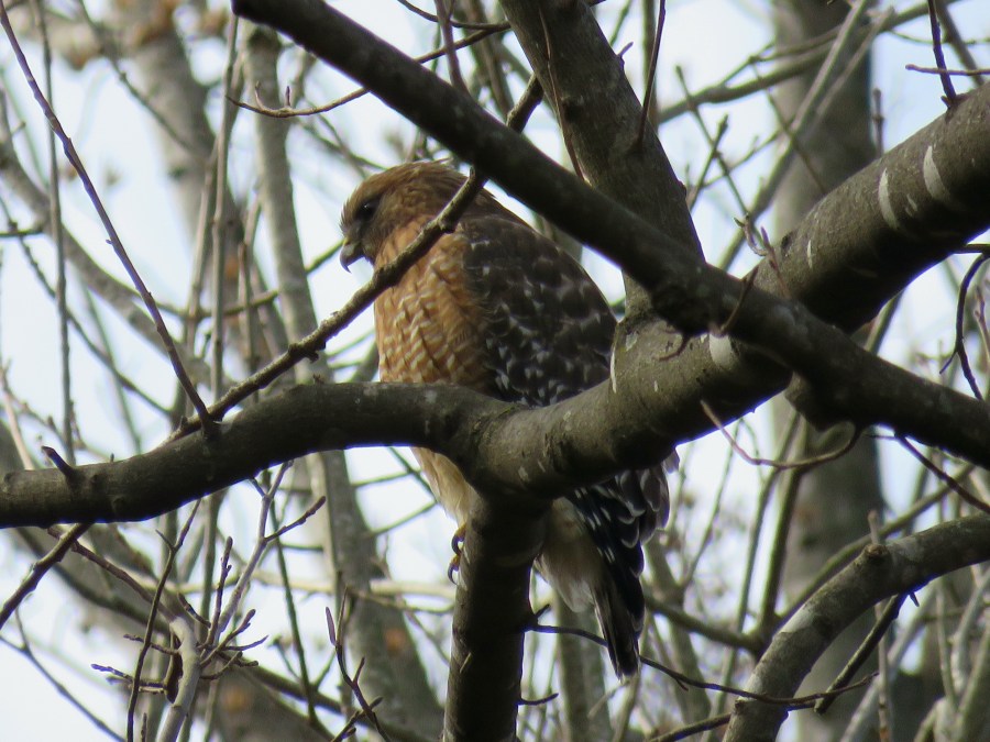 Red-shouldered hawk hunting over the creek at Pony Pasture.