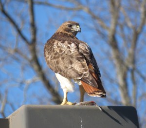 Hawk on the lamp-post – holding a dead squirrel. 9:28