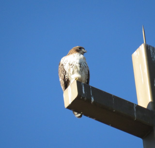 Anyway, I was on my way home from my morning job Wednesday when I passed the church. I see red-tails hunting from a perch on the cross at that church regularly, so I always look up. I saw this one Wednesday morning. This picture was at 9:26: