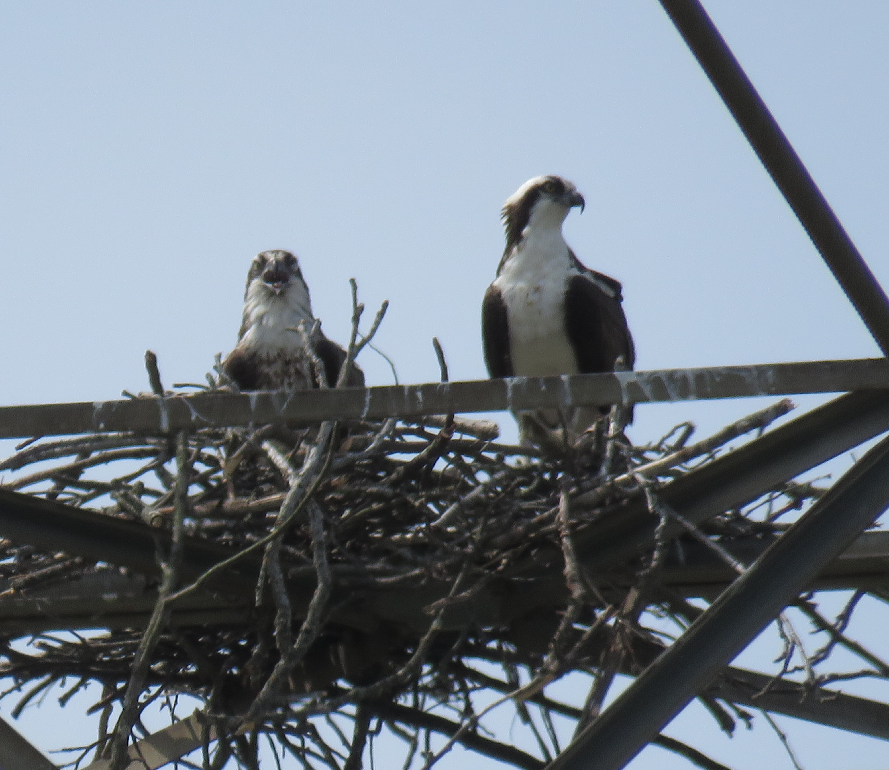 A pair of late-arriving ospreys. These two do not have an air of competence.