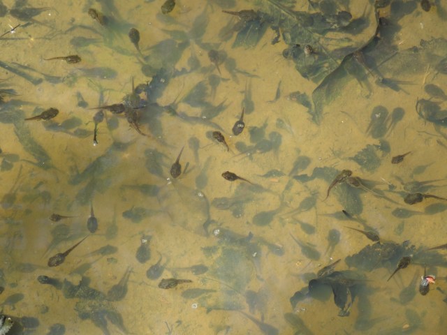 This is a quick video (eleven seconds) of those tadpoles swimming around. It is in its way mesmerizing. You can hear birds singing while you watch: