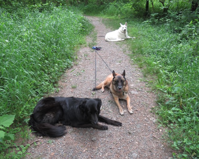 And why not a picture of Mackey, Turner and Yuki taking a hike break at Pony Pasture on Thursday: