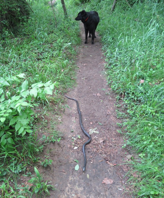 On to snakes. I believe – but am not positive – that this is a Northern Black Racer (Coluber constrictor). It may be an Eastern Ratsnake (Pantherophis alleghaniensis); both are in the park.