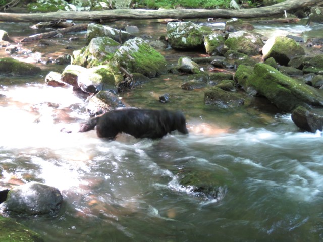 Here are two pictures of Mackey – he can do both these roles. The first picture is from when we were hiking yesterday on Little Stony Creek near Blacksburg. It was hot and Mackey hopped in the creek to cool off: