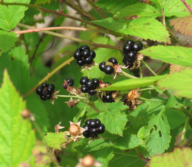 Once again – like a stuck record – I am running too late. Blackberries – or perhaps black raspberries – are coming in all over town. Both are equally edible and equally delicious. I’ll look into it more this week; I think I can tell them apart. The lake at Deep Run Park is surrounded by them. They made a great snack Friday before lunch: