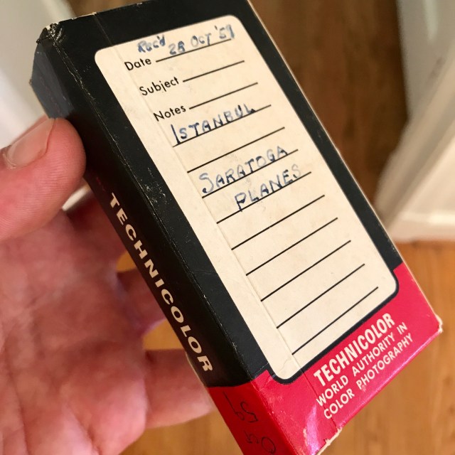 They’re photographs my Dad took fifty-eight years ago! This was a couple of summers before I was born. It says “October” on the box because that’s when he got home and had them developed, I’m thinking. I put that slide plus six more from that series on a page attached to this blog. There is a link to it below the banner at the top of this page, or you can click here and see it: USS Saratoga (CVA 60)