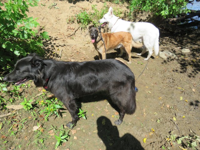 Today at the river – this simply never happens – I had all three dogs standing in a row in the sun – and Mackey was closest! I don’t like it when I get my shadow in a picture but oops: