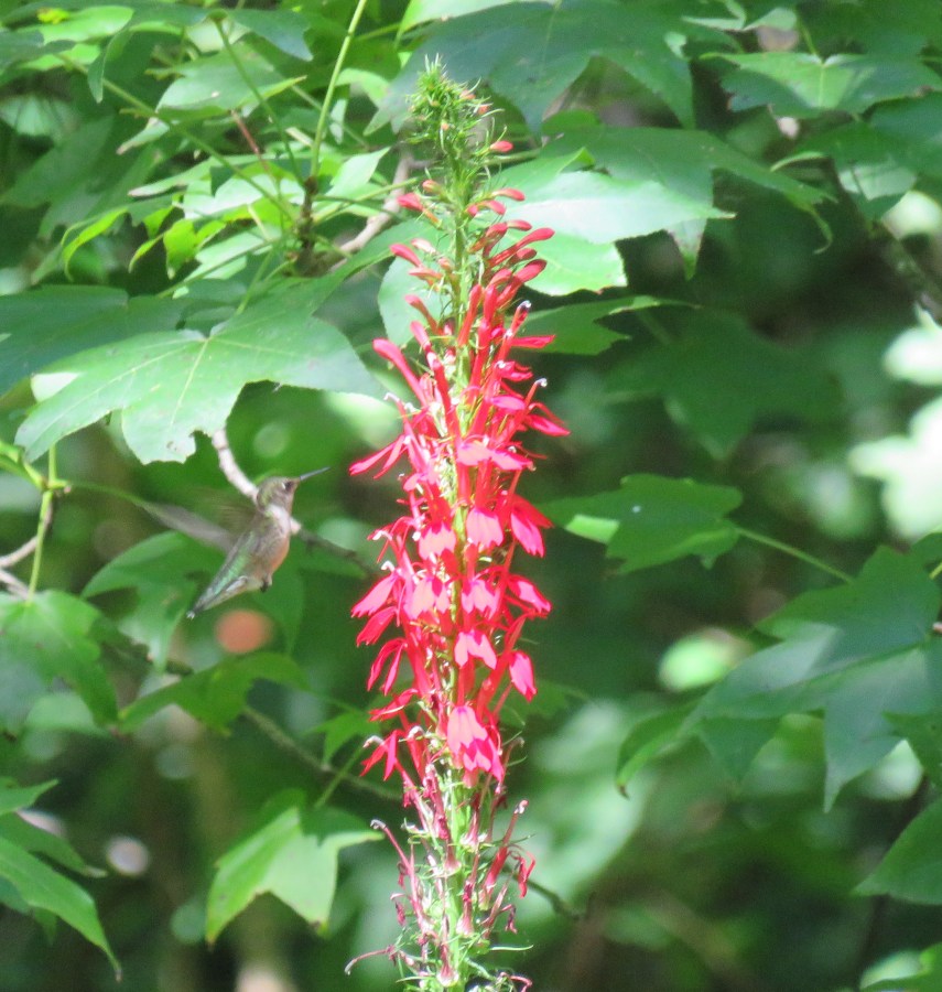 Hummingbird just to left of center in the picture – see it there? So pretty.