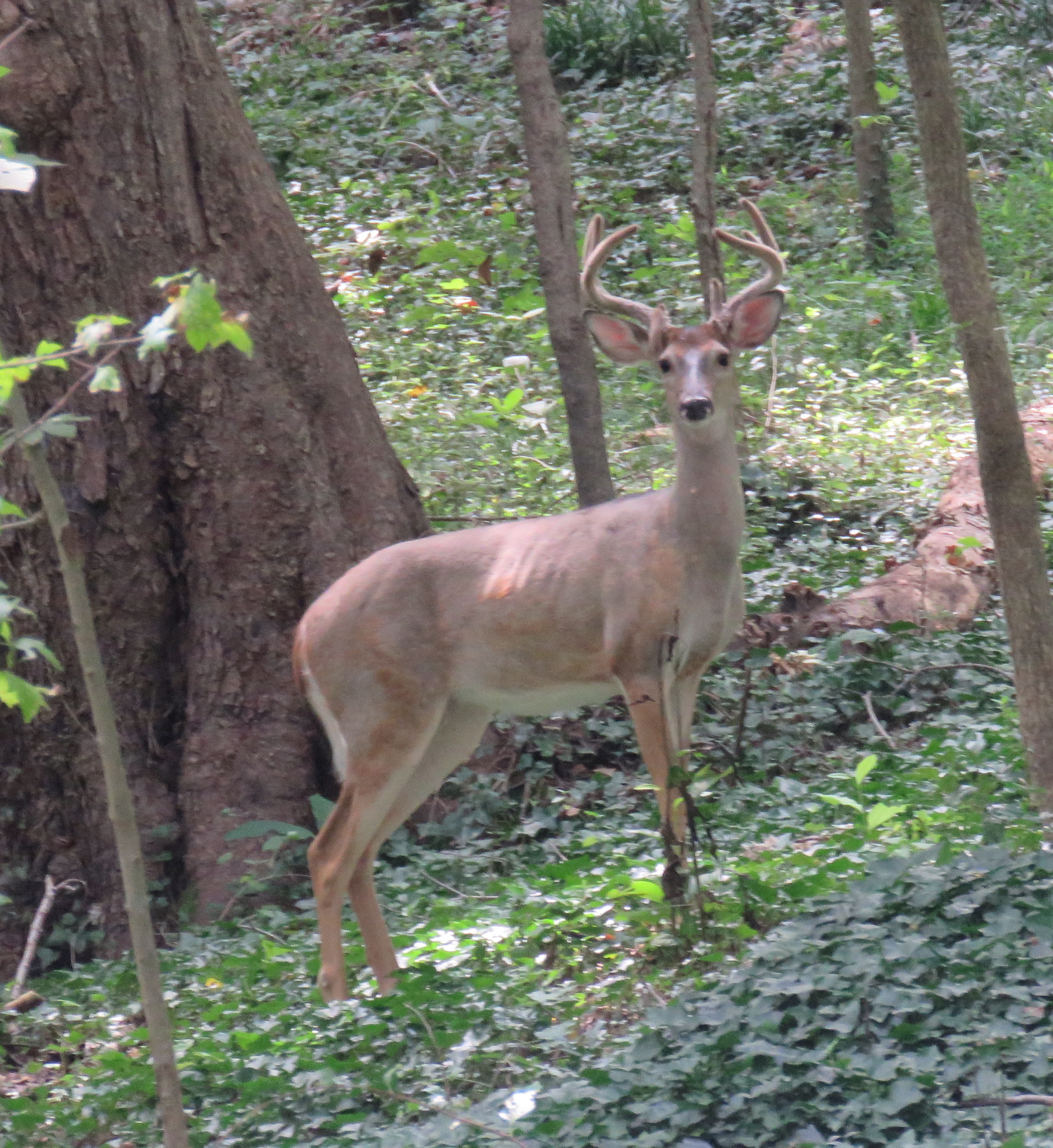 Whitetail buck on the side of Riverside Drive, August 24, 1:00 PM