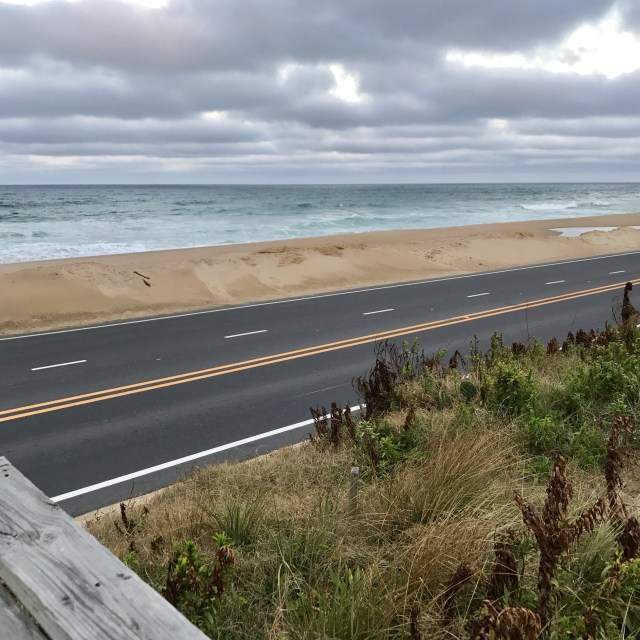 So, seriously, again – hard work? No way. We ate a lot (we burned up a lot) and even that was fun. Yesterday evening – after the Olympic distance race – we had dinner at the Black Pelican Restaurant in Kill Devil Hills. This was the view from the front of the restaurant: