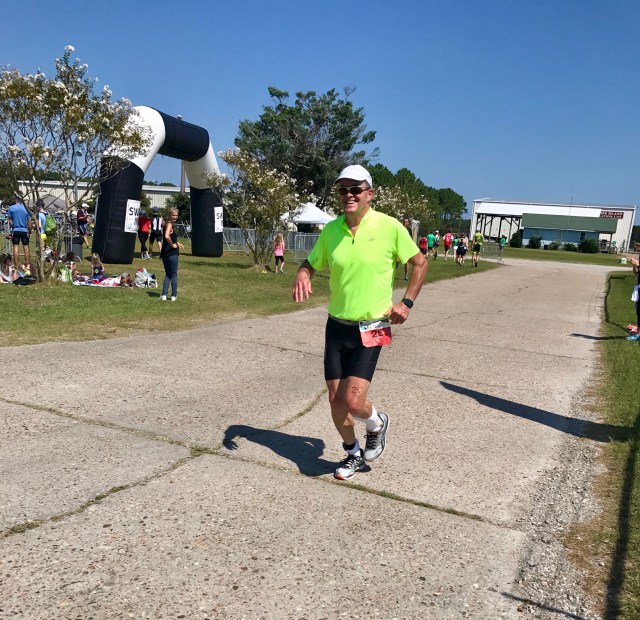 One more race picture. Andrew took this about ten seconds before I crossed the finish line for yesterday’s race: