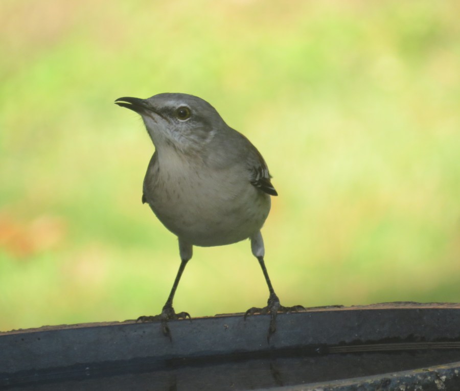 Mockingbird slakes its thirst in our backyard yesterday
