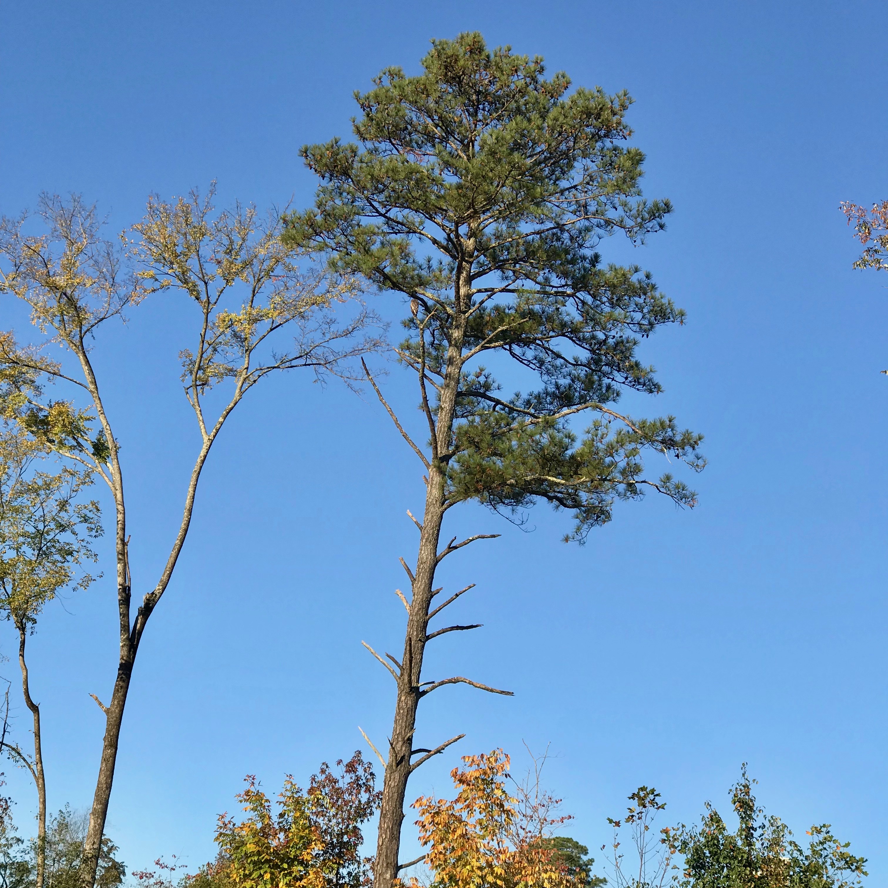 Red-shouldered hawk, dead center, left side of the trunk ~1/3 of the way down: