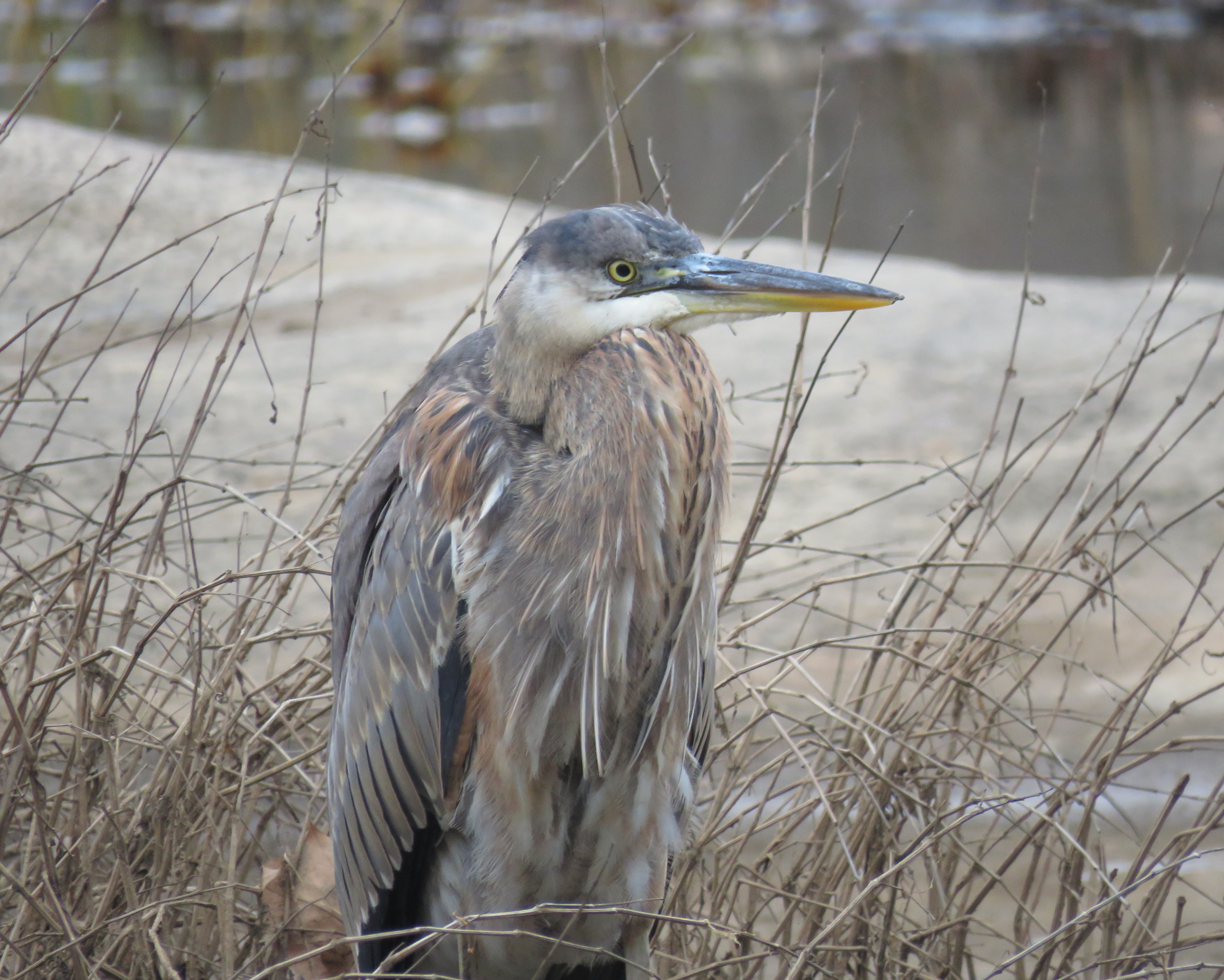 Great Blue Heron at Pony Pasture. They never look cheerful.