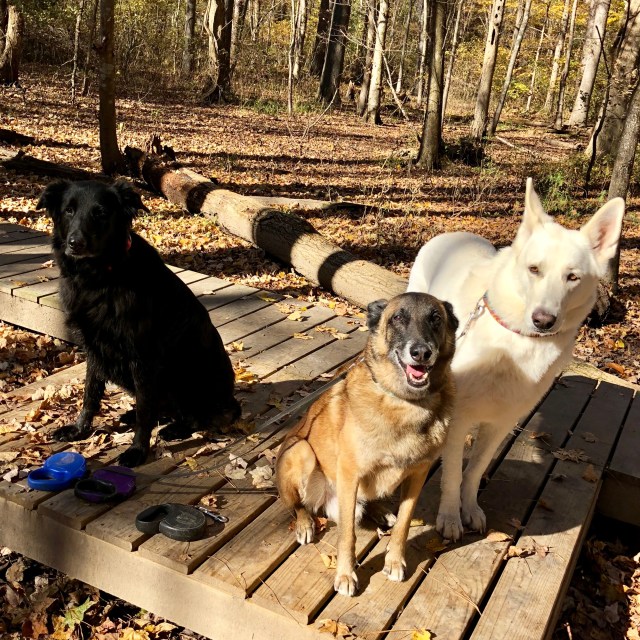 For a rough comparison, I took this picture at Pony Pasture at 12:30 today. Mackey is on the left (he is the absence of light in this image, although he may have the lightest spirit). Turner in the center, smiling, because he’s in the center – that’s his favorite place. Yuki on the right – he appears to be pondering something. They are such excellent boys: