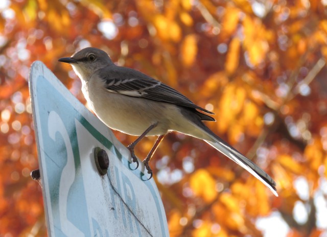 Mockingbird on a sign – my favorite picture in a while. It was an accident!