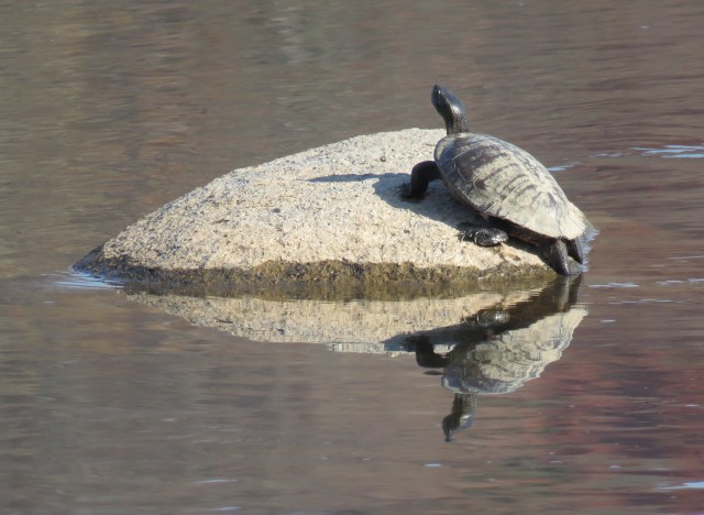 I saw an actual turtle in at the river this morning. It’s December! I liked its reflection on the water: