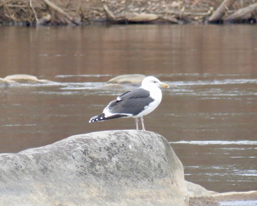 Black-backed gull mid-stream at Pony Pasture this morning