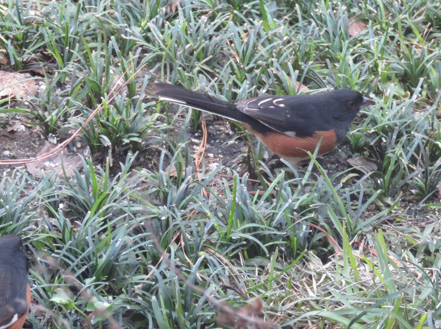 Towhee visible center and partial Towhee visible lower left