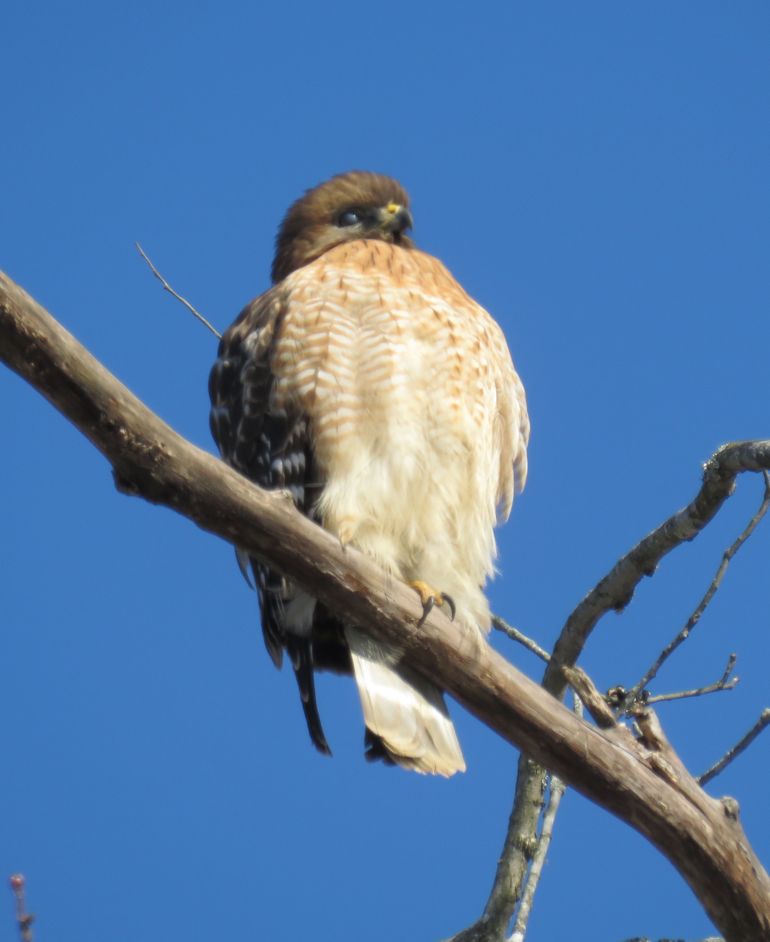 My first Red-shouldered hawk of 2018, 11:00 this morning near the Huguenot Bridge