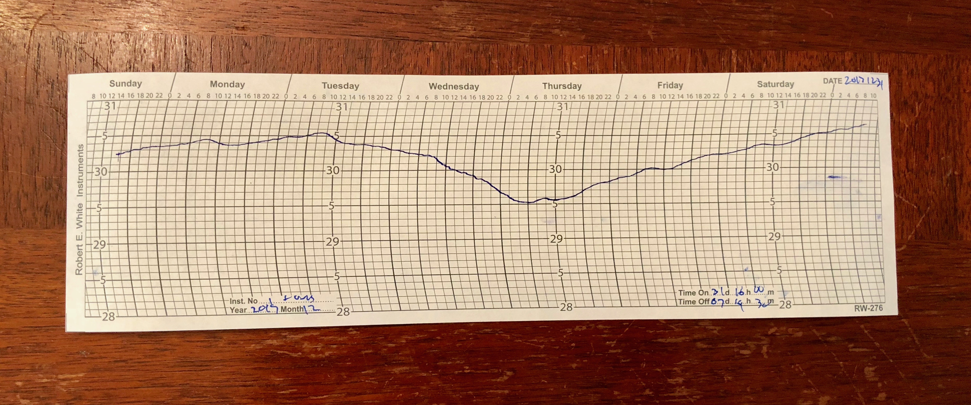 Richmond air pressure, Sunday – Sunday, first week of January, 2018