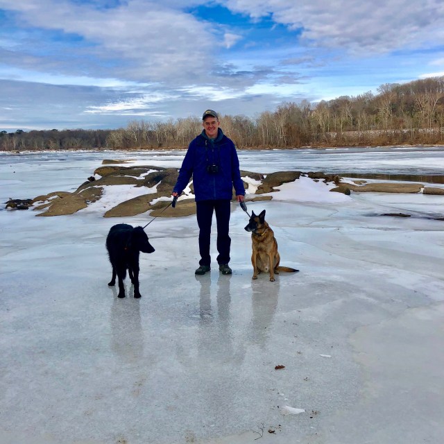 Monday afternoon my friend Sam and I went for a hike and it was a comparatively balmy 45º. But if you’re a Richmonder you’ll recall that was the tail end of several days of single-digit low temperatures. Sam took this picture at 12:45: